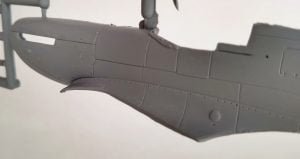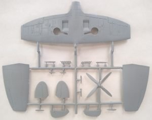 O kit contém duas árvores com sessenta e seis peças moldadas em cinza claro, com muito poucas rebarbas e suas linhas em baixo relevo são finas e muito bem feitas. A superfície das peças possui um acabamento acetinado típicos de kits “Short Run”, e isso é mais nitidamente notado nas asas e fuselagens.