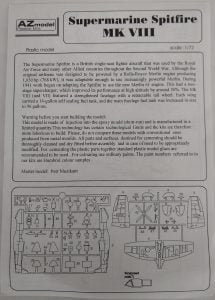 A caixa com abertura pelas laterais aproveita o seu verso para ilustrar em cores as três belas versões de pintura da RAAF – Royal Australian Air Force.