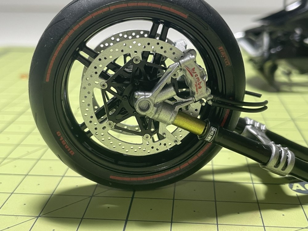 Outro detalhe interessante é a possibilidade de utilizar os próprios recessos das pinças de freio para fazer as inscrições da Brembo, ao invés de usar os decais. Apesar de dar um pouco mais de trabalho, o realismo alcançado é muito superior, e a técnica é altamente recomendada.