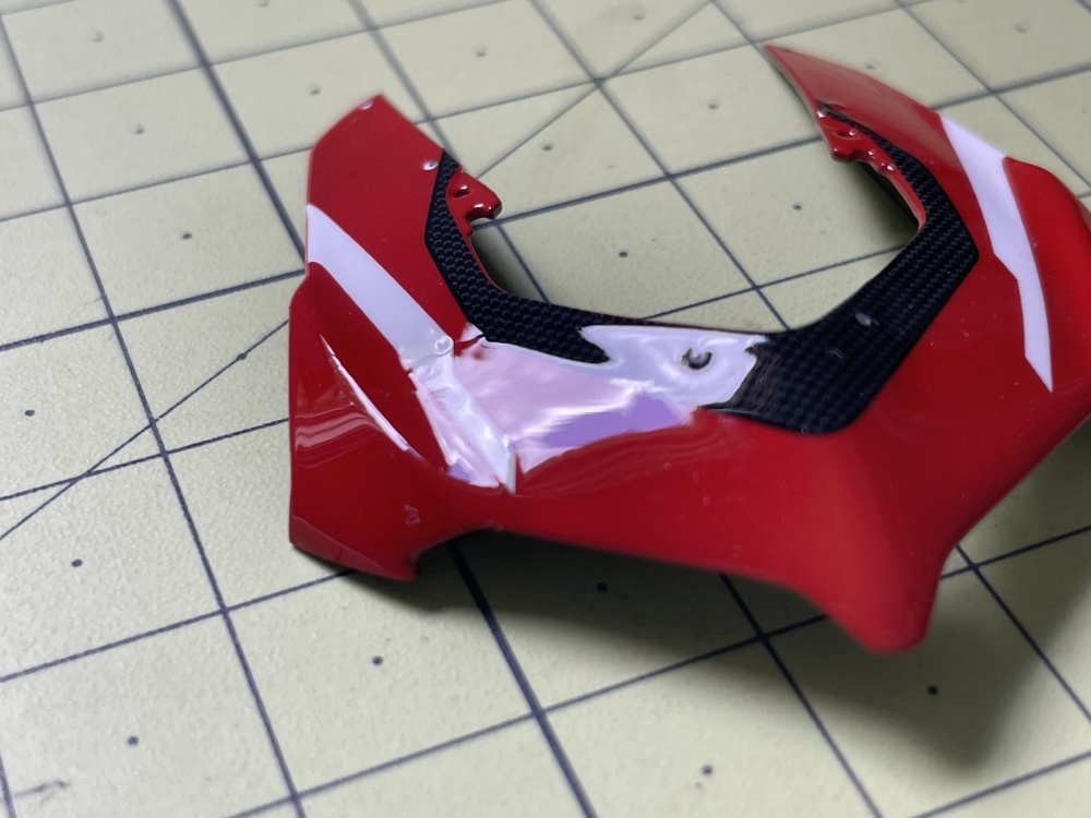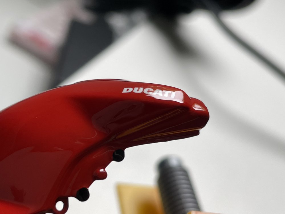 Isso contrasta com outros kits, como a LaFerrari, cujos decais de fibra de carbono exigem bem mais esforço, inclusive o uso de soprador de ar quente para se ajustarem às superfícies — o que felizmente não é o caso da Ducati.