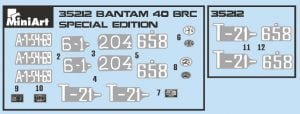 Esse Bantam é um reboxing do original “Comand Car ” de 2008. Contém dois sprues de plástico, um pequeno sprue transparente, um conjunto de photo- etched e decais. Também há um sprues para as figuras, equipamentos e para a metralhadora.