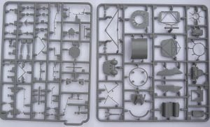 Apesar da quantidade de peças não ser alta, o kit demandará algum tempo para montagem dada a natureza dos detalhes finos e delicados, sendo necessário cuidado para removê-las dos sprues. Existem linhas de molde muito finas a serem removidas, isso é mais fácil de fazer enquanto as peças ainda estão presas as árvores, algumas poucas marcas de pinos de ejeção são visíveis.
